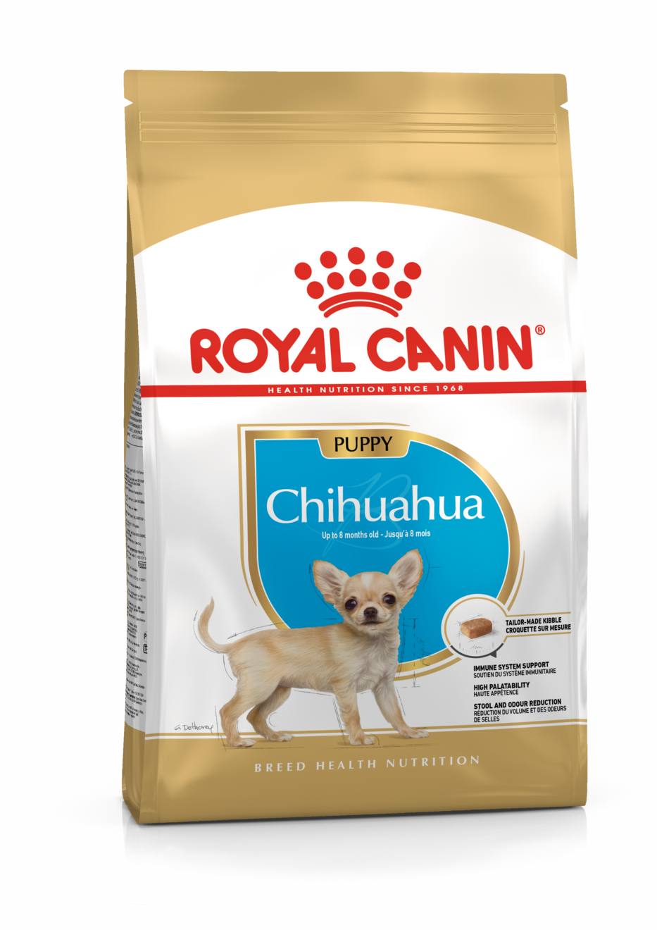 Alimento balanceado completo para cachorros de raza Chihuahua, desde el destete hasta los 8 meses de edad.